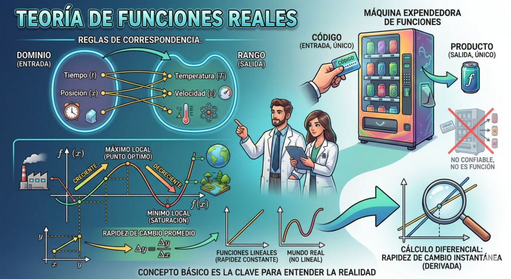 Imagina intentar describir el movimiento de un colibrí, el cambio de temperatura durante un día de verano o la propagación de una epidemia usando solo palabras simples. Es imposible. Nuestro mundo no es estático; está en flujo constante. Para comprenderlo, necesitamos un lenguaje diseñado específicamente para el cambio: el cálculo diferencial e integral. Pero el cálculo no existe en el vacío; se sustenta sobre un pilar fundamental, un concepto que actúa como la gramática de este lenguaje matemático: la función. En definitiva, comprender la relación causa-efecto que rige nuestro universo requiere un dominio profundo de la teoría de funciones reales, y esto a su vez capacita a científicos e ingenieros para modelar, predecir y manipular la realidad en beneficio de la humanidad.