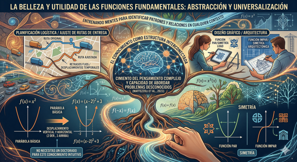 Aquí es donde radica la belleza y la naturaleza del conocimiento matemático: es un proceso de abstracción y universalización. El conocimiento no es una mera colección de hechos aislados; es una estructura interconectada que nos permite hacer sentido de la realidad. Maffezzoli et al. (2023) argumentan que la comprensión de conceptos fundamentales, como los de la teoría de funciones, no se limita únicamente al ámbito matemático, sino que es el cimiento sobre el cual se construye el pensamiento complejo y la capacidad de abordar problemas desconocidos de manera estructurada. Al dominar estas herramientas, no solo estamos aprendiendo fórmulas, sino entrenando nuestras mentes para identificar patrones y relaciones en cualquier contexto.