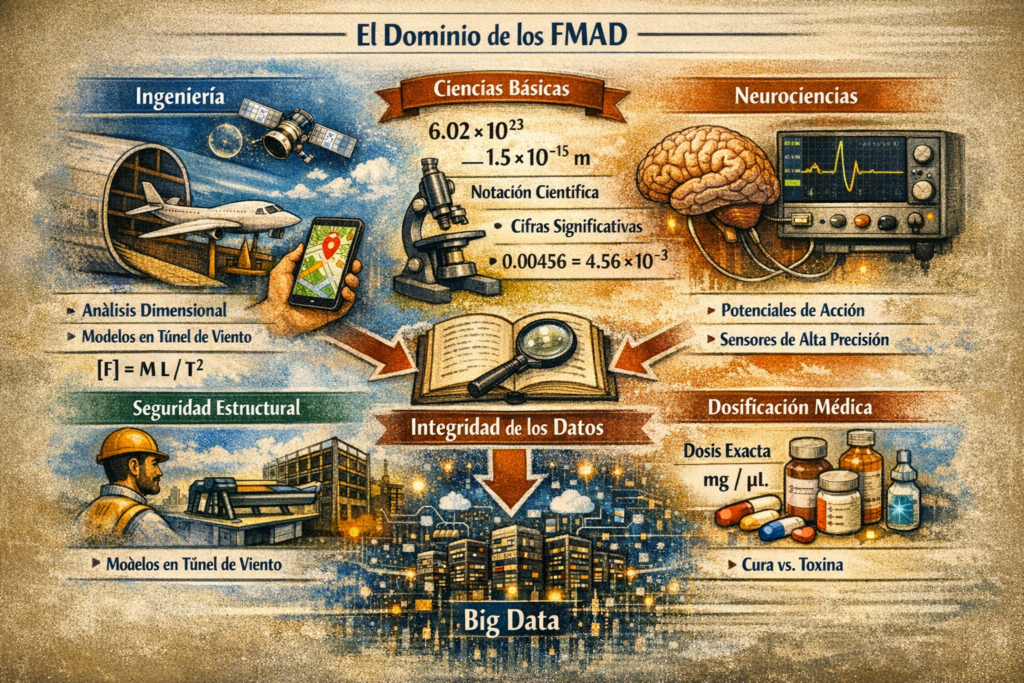 El dominio de los FMAD es la llave maestra para múltiples disciplinas. En Ingeniería, el análisis dimensional permite verificar si una ecuación es coherente (Principio de homogeneidad dimensiona) y diseñar modelos a escala en túneles de viento. En Neurociencias, la medición de potenciales de acción requiere sensores con una resolución y calibración impecables para no confundir el ruido electrónico con señales cerebrales.